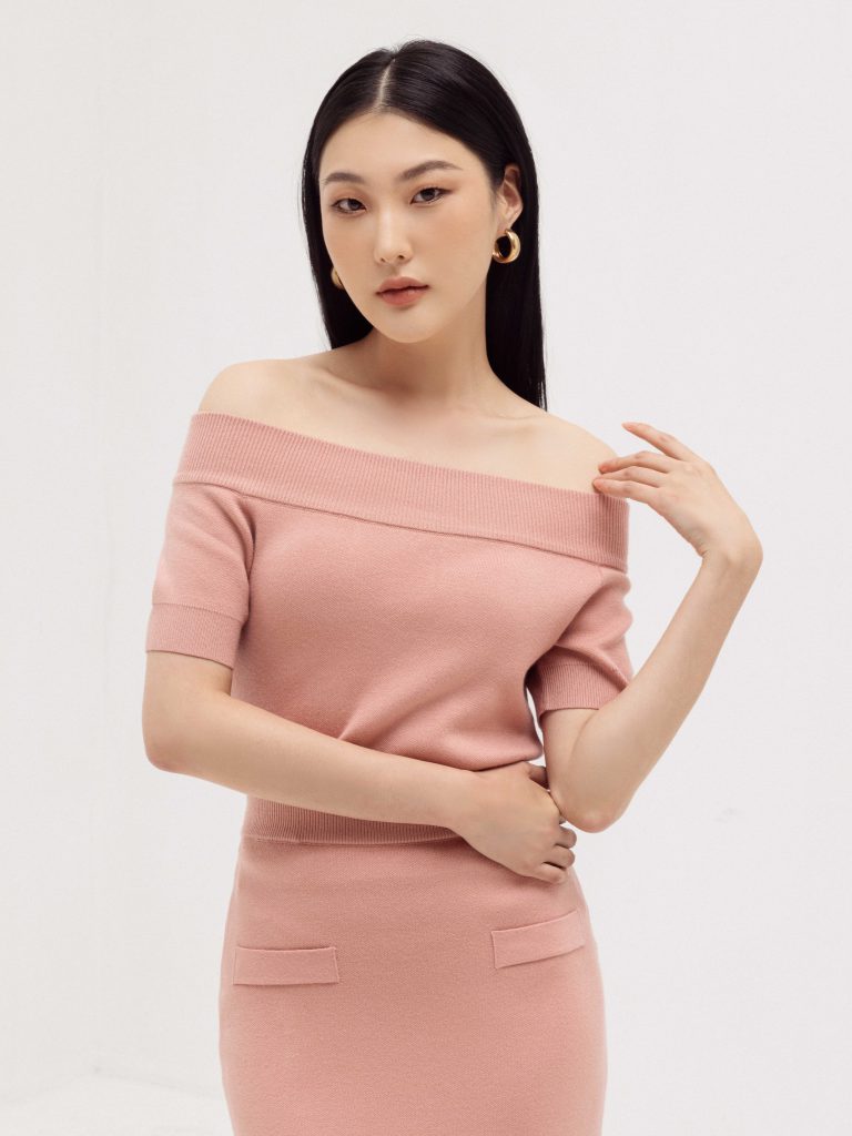 - Để giải quyết triệt để rào cản này, Ngọc Châu ứng dụng kỹ thuật dệt giảm mũi (Fully-fashioned) trực tiếp trên dàn máy vi tính Shima Seiki thế hệ mới. Thay vì cắt may nẹp cổ từ các tấm phôi phẳng một cách rời rạc, chúng tôi lập trình để nẹp cổ được định hình ngay trong quá trình dệt thân áo. Cơ chế này cho phép tính toán chính xác mật độ mũi dệt tại các điểm khúc quanh vai, giúp phần cổ thuyền có độ vát mềm mại và nằm phẳng tuyệt đối trên vai người mặc.