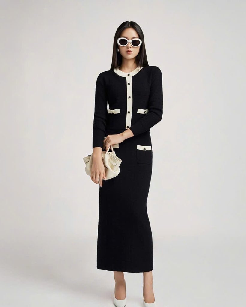 - Trong phân khúc thời trang dệt kim cao cấp, khả năng xử lý những đường cong chuyển tiếp là yếu tố phân loại trình độ giữa các xưởng sản xuất. Tại miền Bắc, Ngọc Châu tập trung vào kỹ thuật dệt định hình hiện đại, giúp quá trình sản xuất váy len đạt đến độ tinh xảo tối đa, đặc biệt là ở những chi tiết khó như đường chiết eo và hông.